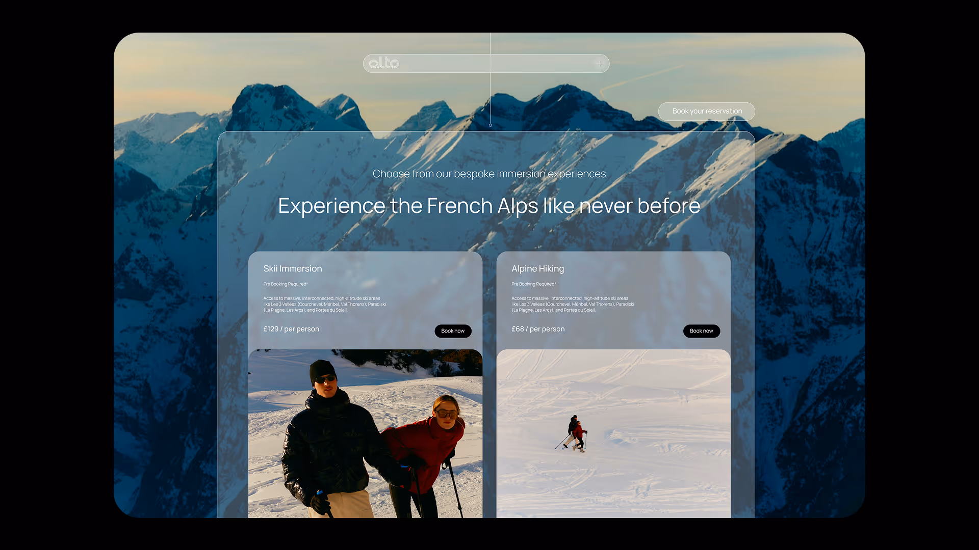 alto is a premium Alpine Experience Brand offering skii expeditions and swiss lodges. It’s a meticulously designed immersion into alpine excellence. Helicopter arrivals, personalized itineraries, and secluded luxury lodges — every element tailored for those who live life above the line.