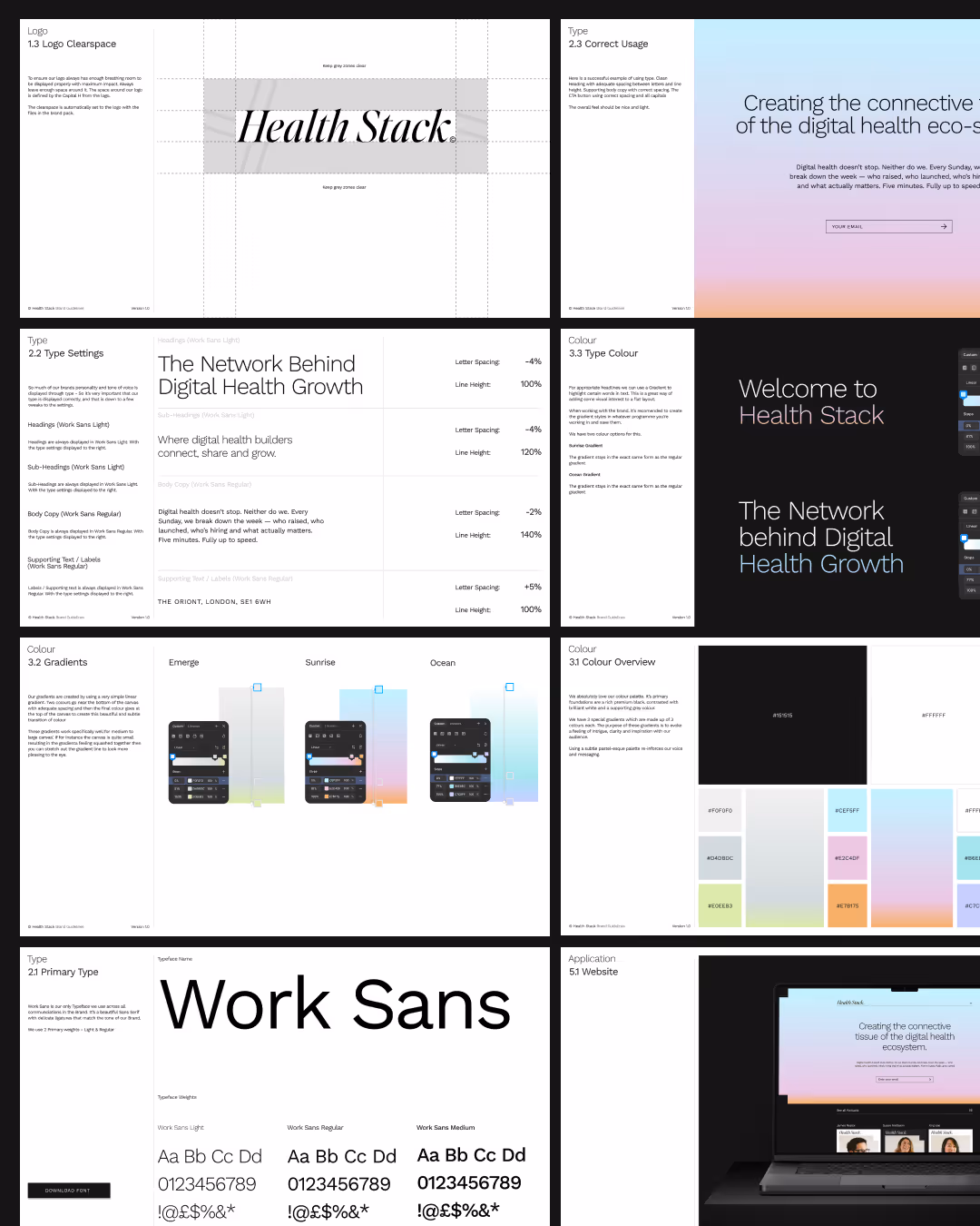 The founder quickly decided he needed a website for the new brand to live, so adding to the scope, we created that within one week (stellar work to Lee) and it really brought the brand to life. They now have a simple brand system that reproduces equally well over print and digital. Supplied with clear, easy-to-follow Brand Guidelines and Social Templates, the brand can move efficiently as it's rolled out into the fast moving space of health tech. Go check them out ! https://healthstack.tech/