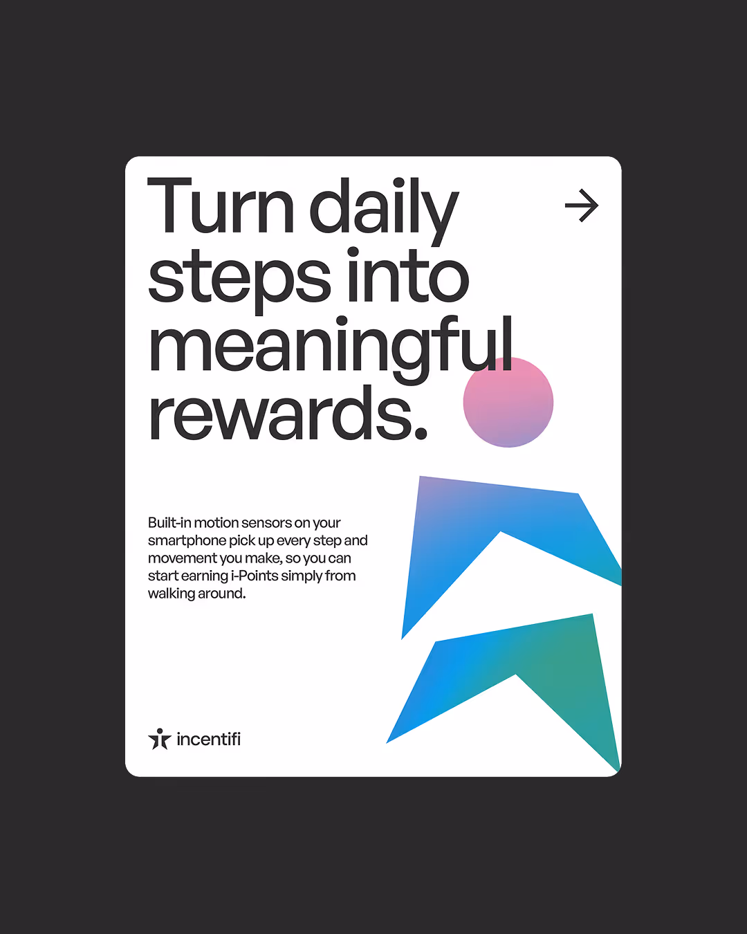 While working on the brand I personally felt that incentifi was so much more than just one colour and I remembered something that came up in one of our early calls that stuck with me. And that was that the brand sits at this intersection of wellness, rewards and travel. Paul also wanted to emphasise the journey a user takes will using the app.